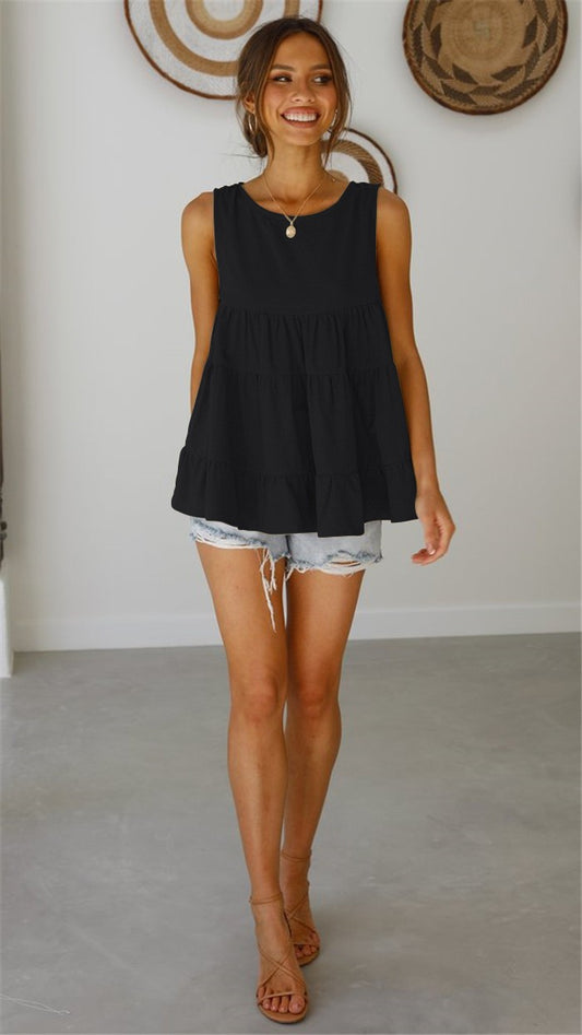 Yellow Cream Bow Tie Notched Neck Pleated Tank Top